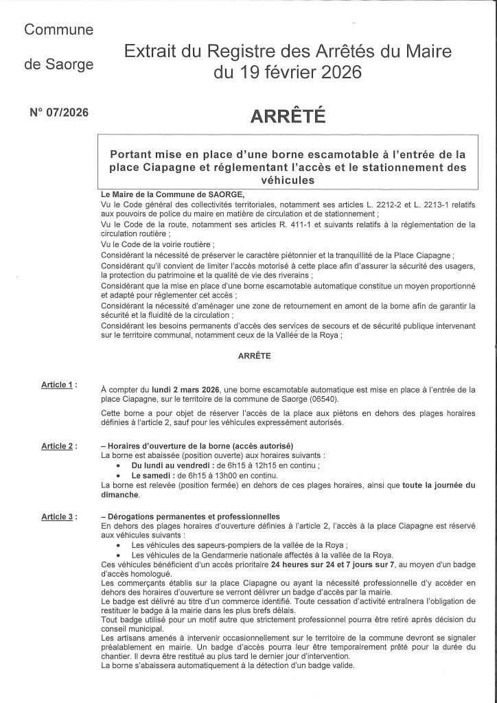 Vous trouverez ci-dessous l’arrêté règlementant l’accès.