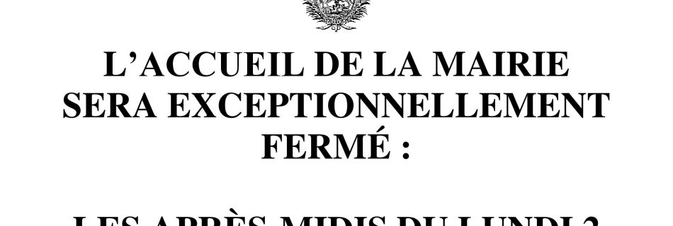 Fermeture de l’accueil de la Mairie les après-midis du 2 au 6 mars 2026par adm-saorgePublié le 27/02/2026Aucun commentaire