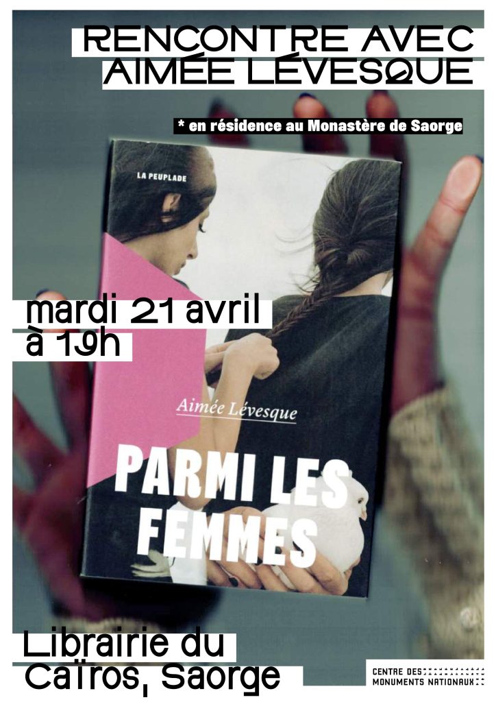 Mardi 21 avril à 19h à la Librairie du Caïros, venez rencontrer l’autrice québécoise Aimée LEVESQUE autour de son dernier ouvrage « Parmi les femmes » et du projet sur lequel elle travaille actuellement, en résidence au monastère de Saorge.