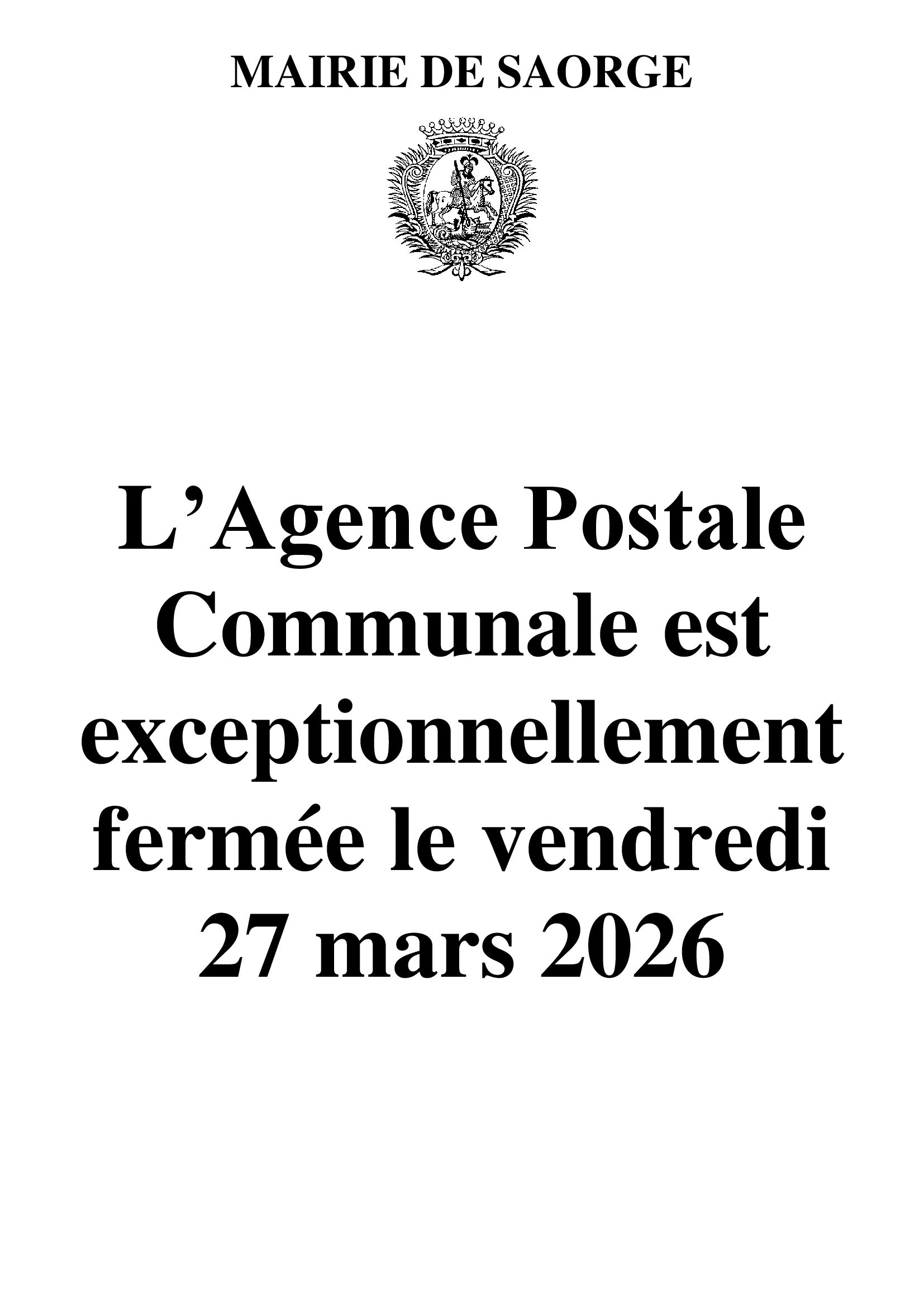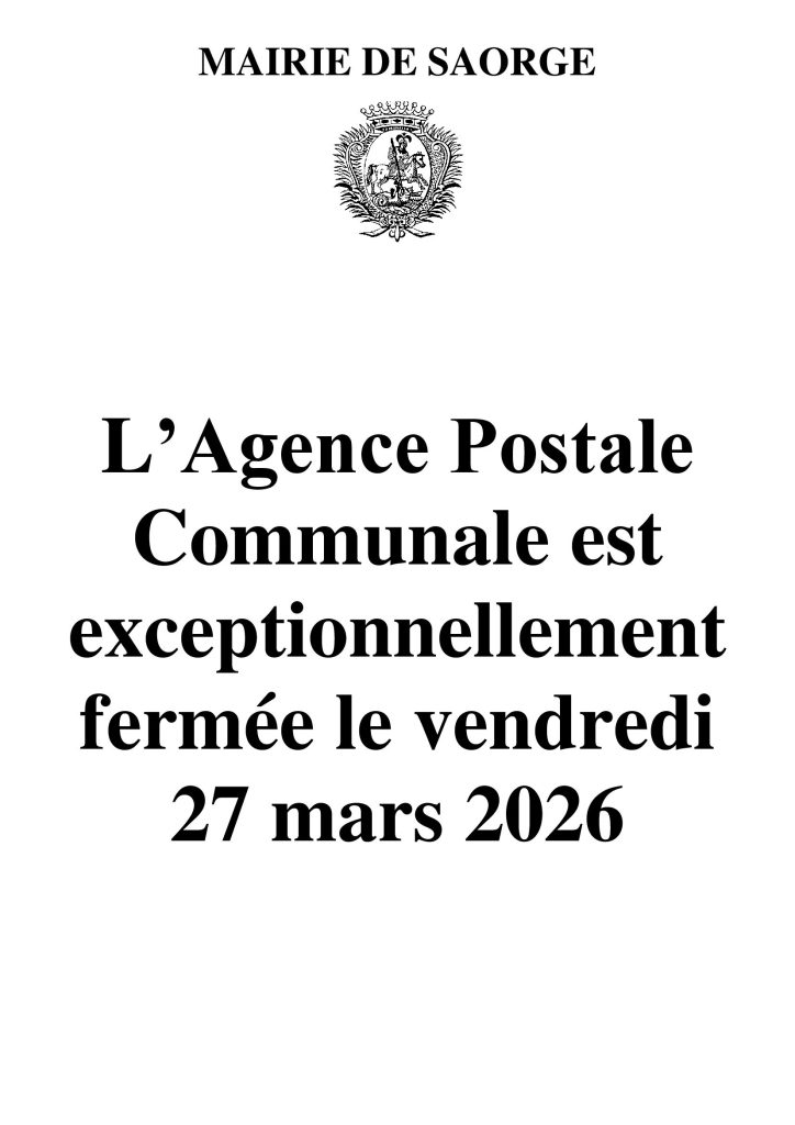 Fermeture exceptionnelle de l’Agence Postale Communale vendredi 27 mars 2026