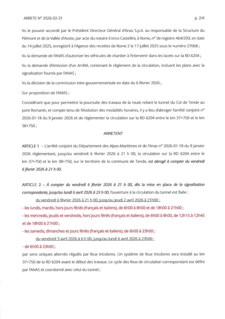 Infos circulation Tunnel du Col de Tende