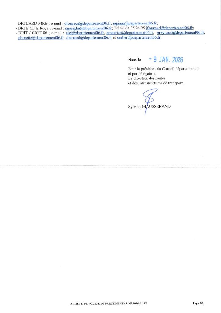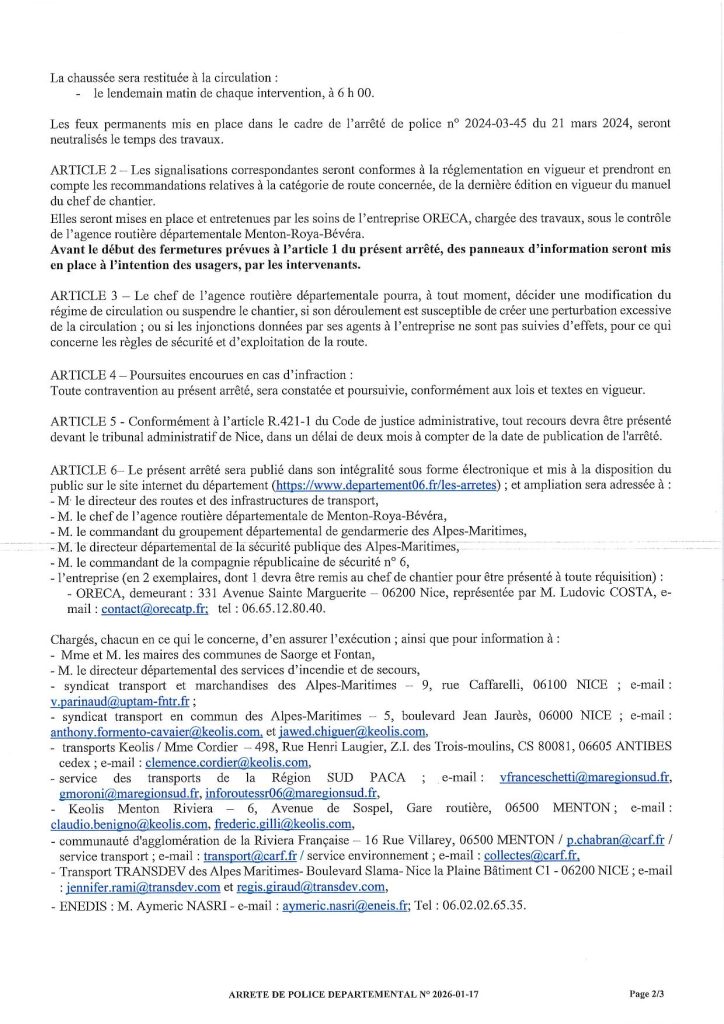 Nouvel arrêté départemental relatif à la fermeture de la RD 38 (tunnel St Roch) entre Fontan et Saorge