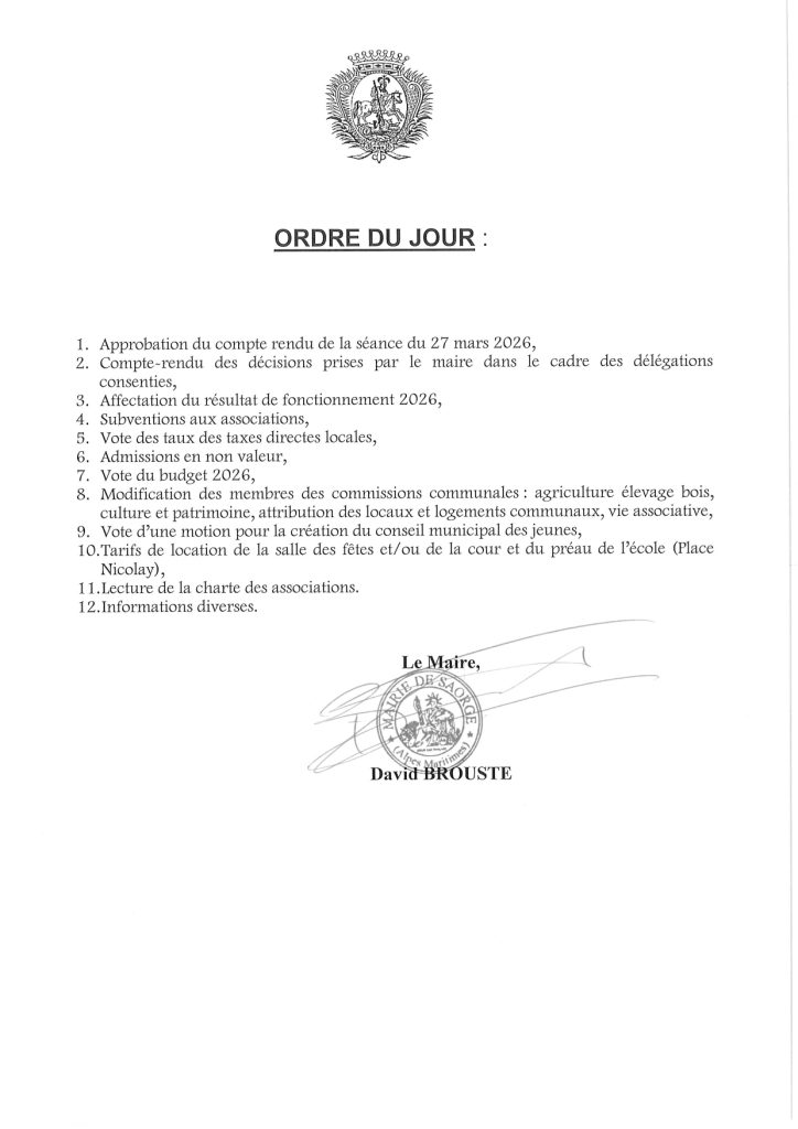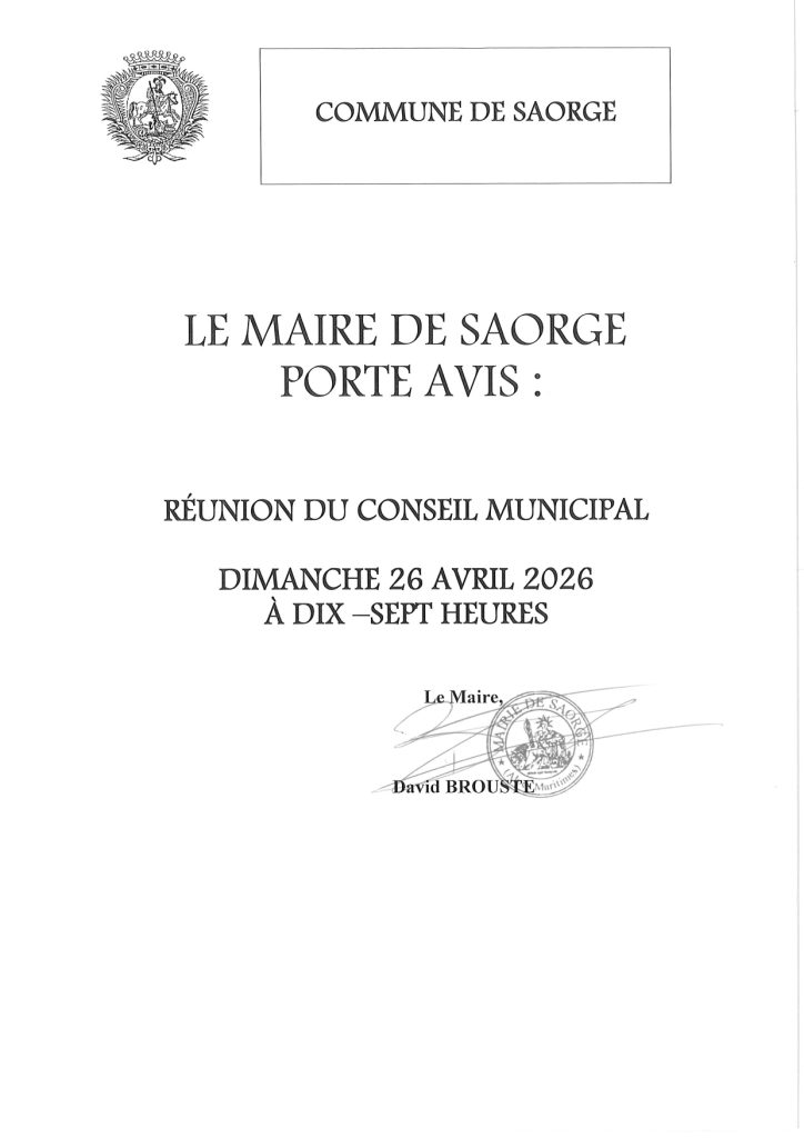 Réunion du Conseil Municipal dimanche 26 avril 2026 à 17h